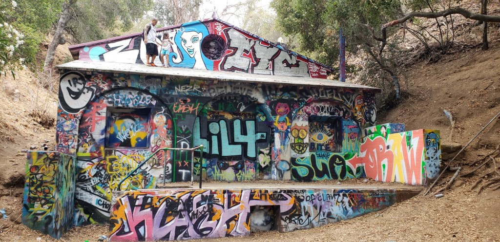 One weekend, Nate, his daughter and I finally decided to go. Getting to the bottom was the easy part. You climb down a bunch of stairs, I mean hundreds. So we trek down to the bottom of the mountain. Finding the little shack wasn’t hard at all. Once we got there, it was like, Yay, we found it! Climbed on top of the shack, took pictures. Went around the back and other areas and took more pictures. It was pretty cool seeing this place even with the graffiti all over the place.